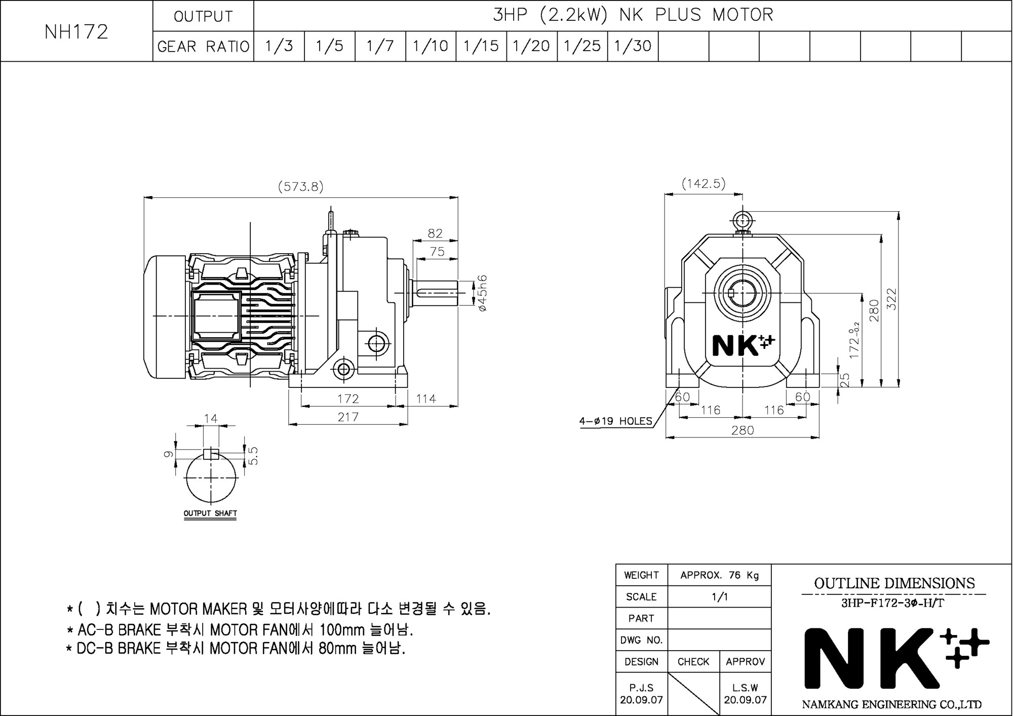 - NK PLUS MOTOR (남강 자사모터), 효성모터, 하이젠모터 적용