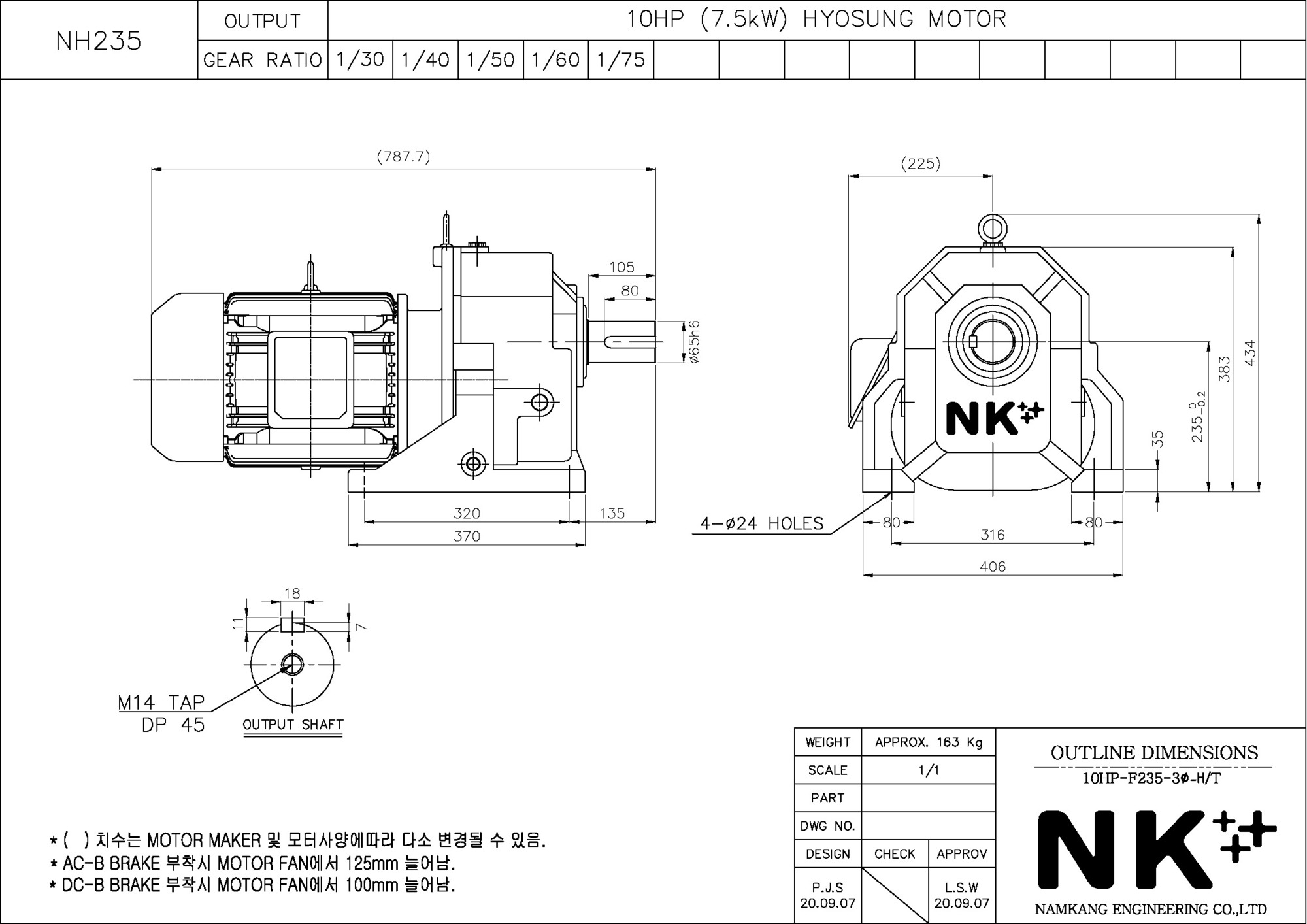- NK PLUS MOTOR (남강 자사모터), 효성모터, 하이젠모터 적용